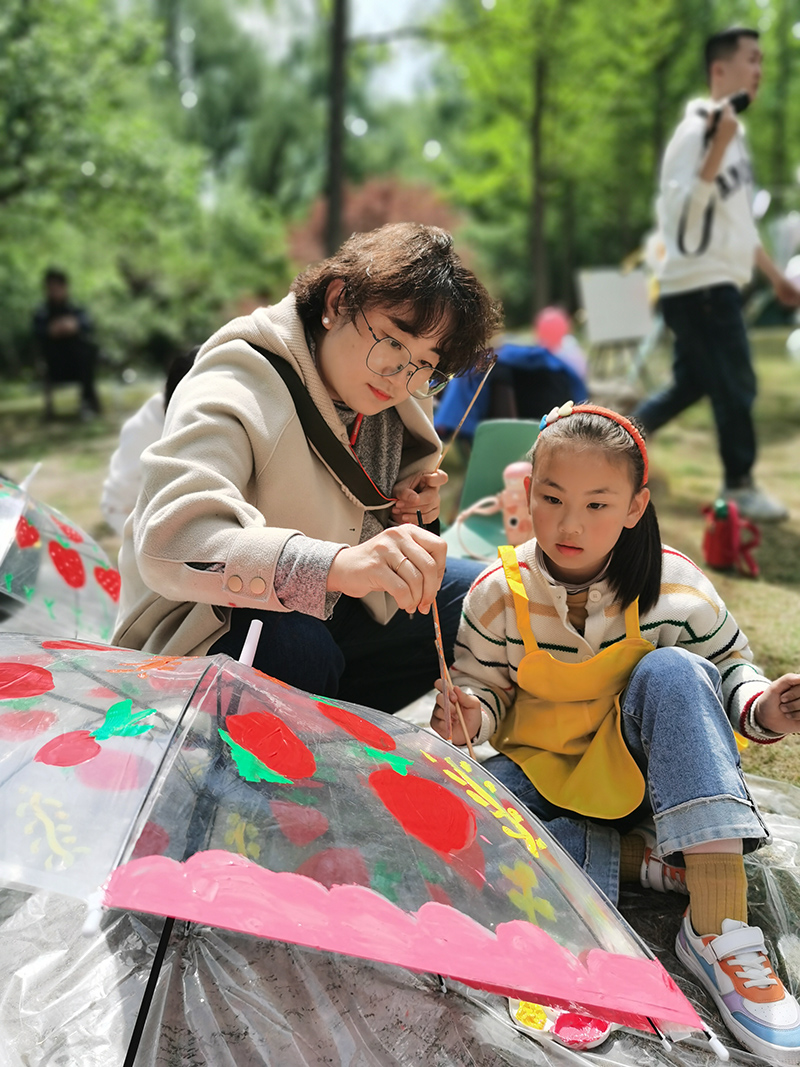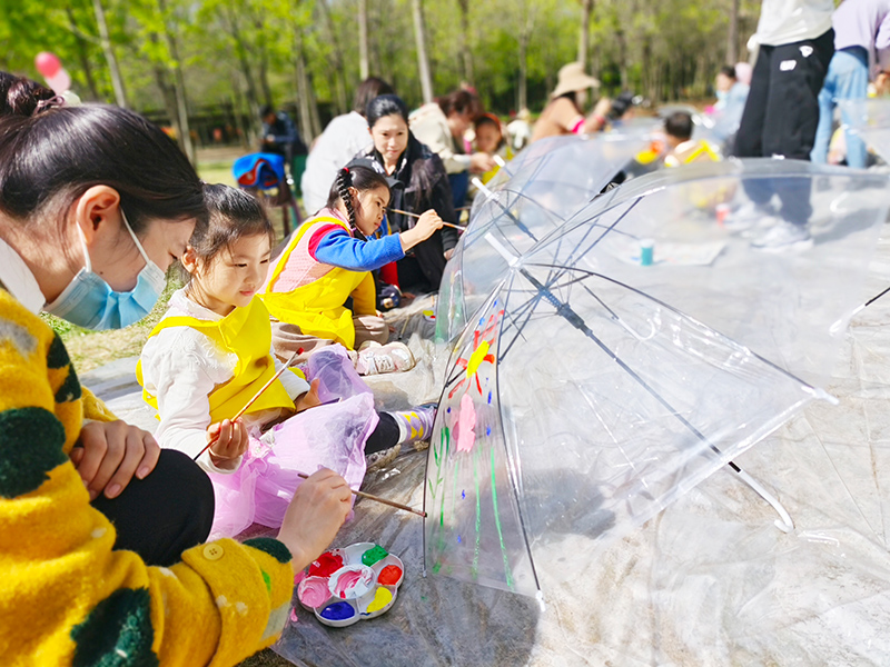 春光作序,万物和鸣!让我们一起走进大自然的课堂,开启一场神奇的创意之旅,让一花一草,一叶一木告诉我们,创意的灵感无处不在!2023年4月我们在泉城济南举办了一场自然美育亲子艺术课,邀请家长和小朋友们一起赏美景,绘花伞,共同度过了美好的亲子时光。