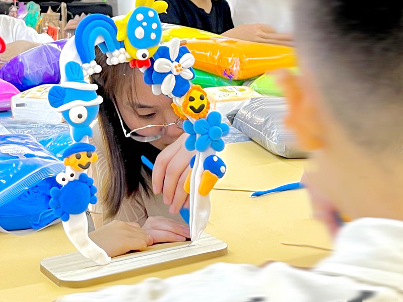 家长和小朋友们在导师指导下尝试超轻黏土创作
