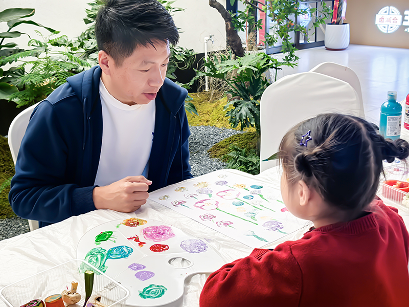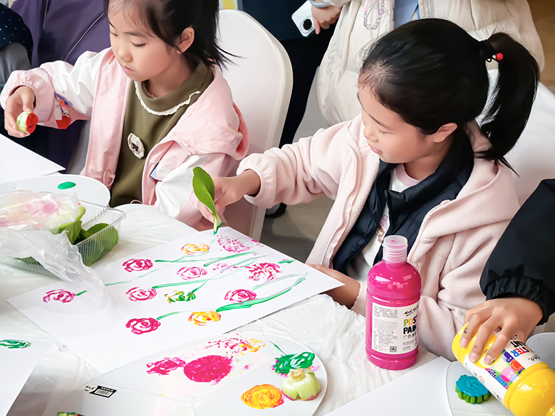蘸上喜欢的色彩轻轻按压,美好图案就在画纸上慢慢浮现。