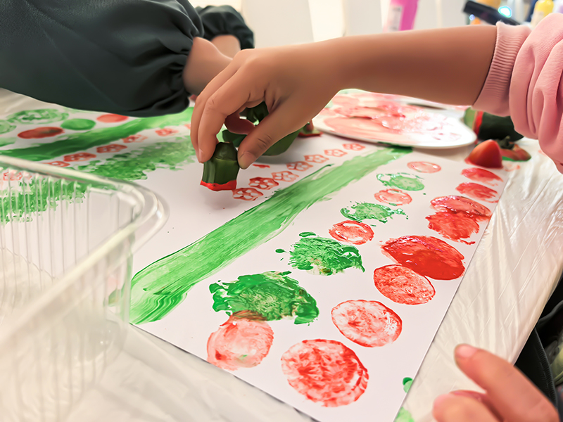 用双手触摸季节,用创意点亮自然。自然的每一片叶、每一颗菜,都藏着等待被唤醒的艺术密码。在这个充满浪漫与诗意的季节里,我们与孩子们一起跳出画纸的边界,用蔬菜拓印出斑斓肌理,用树叶拼贴出童话世界······趣味艺术形式,让观察力、想象力与动手能力在指尖共舞,把平凡的自然物,变成独一无二的童年创作。