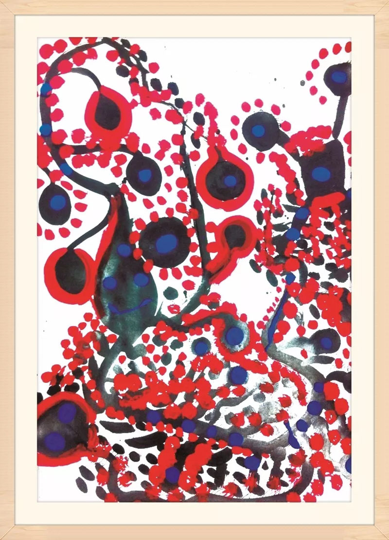 作品点评:抽象课程往往是孩子们很难驾驭的,但是小画家却用绘画里面的点线面的构成形式和冷暖色的强烈对比渲染出抽象艺术的美感。