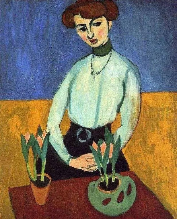 马蒂斯世界名画《年轻姑娘和郁金香 》