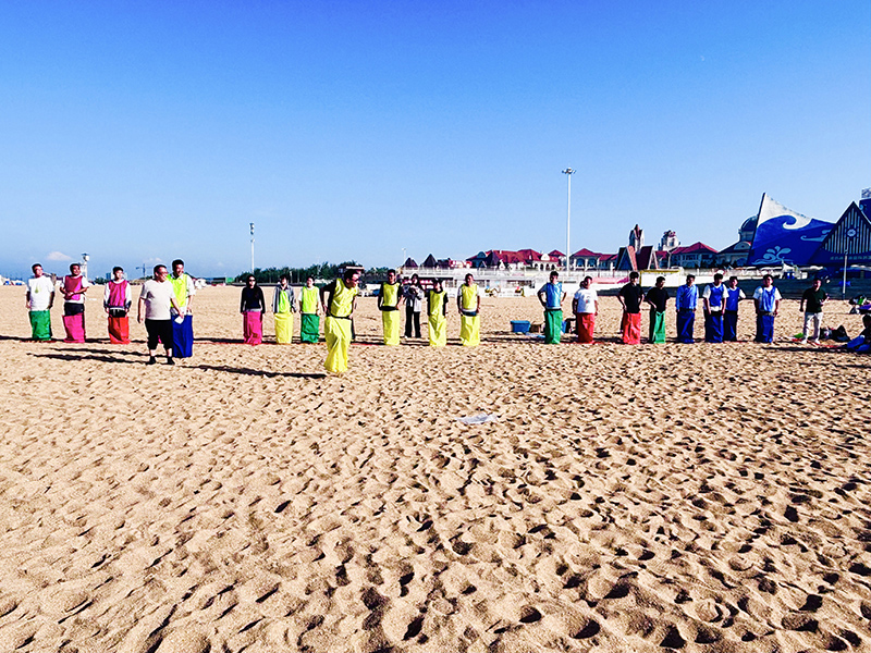 海风轻拂,威海地区的家人们沿着海岸线漫步,听浪花拍岸,看海鸥盘旋,这场海边的团建像极了艺术创作。