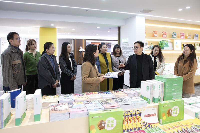 访谈之余,高登科老师兴致盎然地参观了我们的产品馆。从系统呈现希望美术教育发展脉络与教育理念的“希望历程馆”,到具体展现教学进阶的课程体系展示,高老师细致观摩,不时驻足交流。他对我们将抽象美育理念转化为具象、可感知的课程产品与教学成果表示赞赏。当看到将课程精华与创意素材融为一体的“课程礼盒”时,高老师表现出浓厚兴趣,认为这种形式让美育超越了课堂,真正融入了孩子的日常生活。此次参观不仅是一次成果检阅,更是一次双向的启发。高登科老师对我们在产品化、系统化方面的探索给予了高度评价,并且在美育的普适性与专业性结合方面做出了卓有成效的尝试。