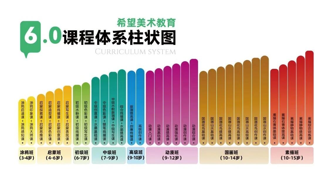 历经21年教学深耕,我校课程体系已迭代升级至6.0灵感多元美育课程体系,稳居行业标杆地位。该体系以科学严谨的教学大纲为核心纲领,为孩子们构建起系统化、专业化的艺术成长进阶路径。同时,我校将“教学八步法”“美术技法十个五”等特色教学方法深度融入课堂实践,通过标准化的教学实施流程,全方位筑牢教学品质根基,确保教学效果精准落地,最终高效达成教学三大目标,进一步巩固了在美育课程领域的核心竞争力与标杆地位。