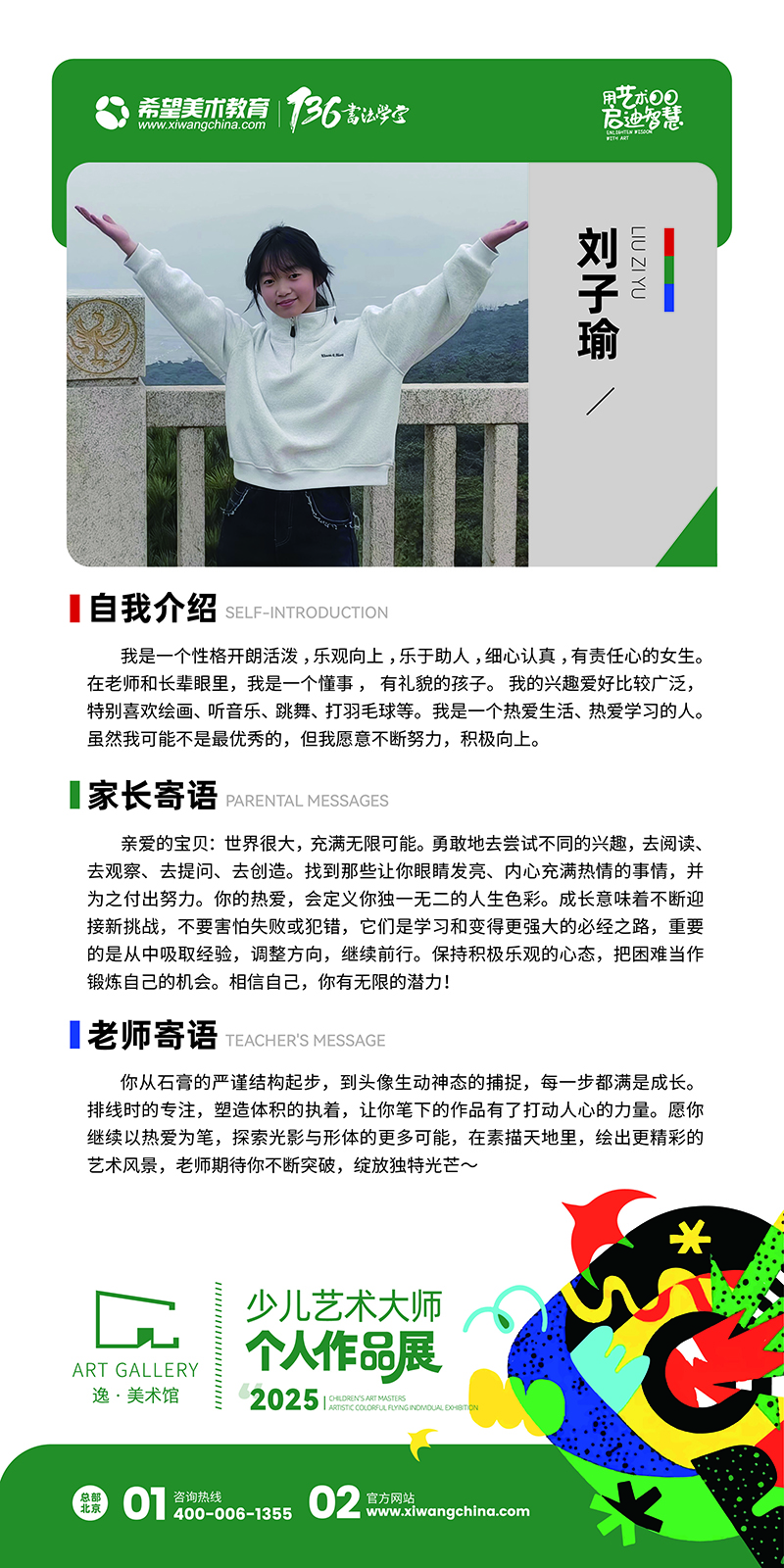 2025年11月1日,希望美术教育 逸·美术馆迎来了【第四届 逸·美术馆少儿艺术大师个人作品展】,本次个展涵盖了各个年龄段学员的近500幅优秀作品,涵盖了从启蒙到综合到专业的所有课程。小艺术家们的作品赢得了观者的高度评价。