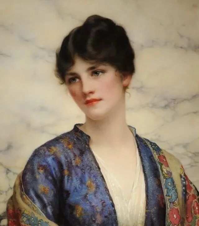 沃特勒描绘最多、也最为成功的是东方风格的女性肖像画,这幅《瓦莱里娅》就属于这类作品。画面上是一位东方装扮的女性,背景也是东方风格的。在东方画派的作品流行期间,青年女性的这身装扮在当时的英国十分走俏。沃特勒利用这种风气不仅享受了在古典或东方的氛围里描绘窈窕女子带来的快乐,还借此机会用同时代的模特再现了古典题材。