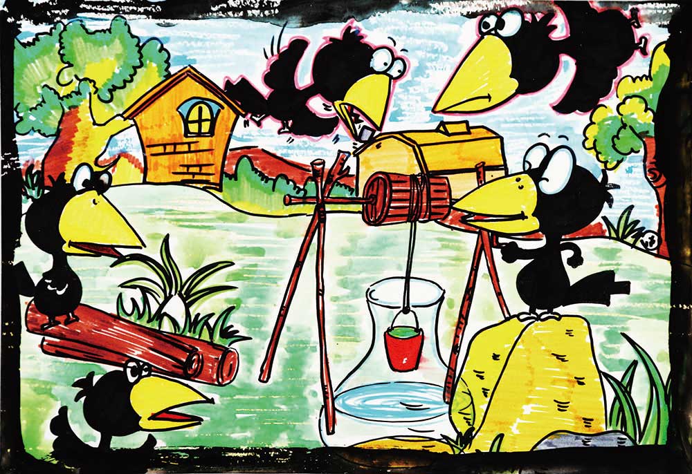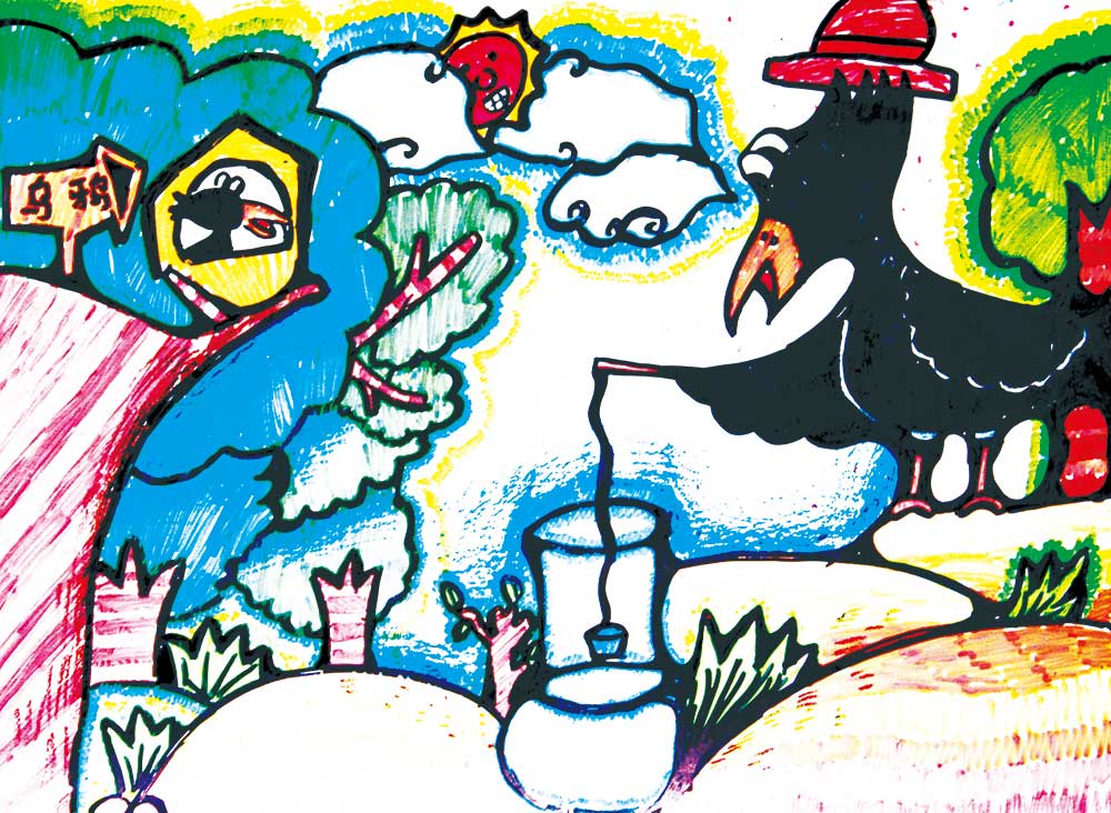 学习寓言故事“乌鸦喝水”,感知故事背后带给学生的深层意义。让学生学会遇到困难,积极寻找解决困难的办法与途径。面对问题,认真思考,让问题迎刃而解。