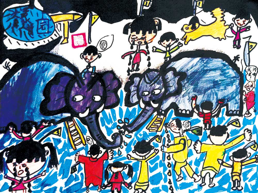 通过成语故事的学习,希望美术的小画家们掌握了大象和人物形象的基本造型。学习了大与小、疏与密的对比关系,加强了学生的构图意识。调动了小画家们的积极性,增强了绘画兴趣。让孩子们了解看待任何事物不能片面性,而应从全局考虑才能了解事物的本质。