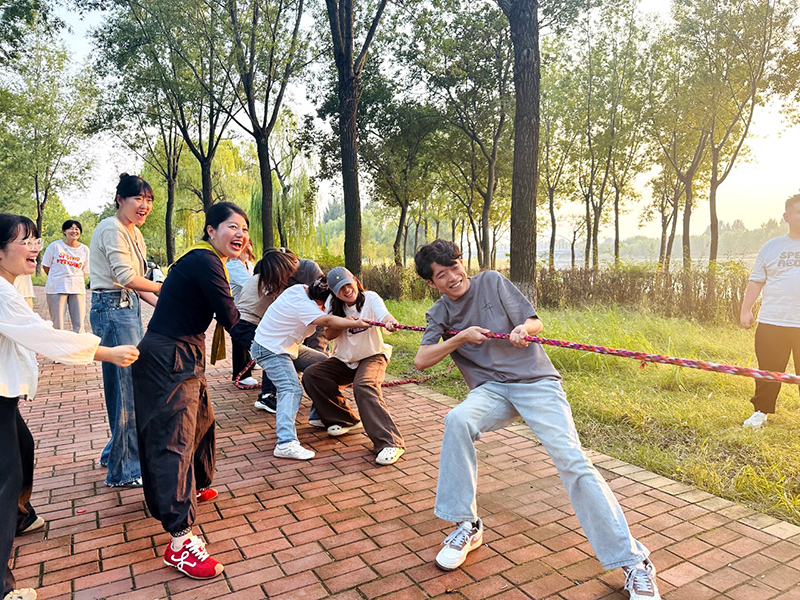 拓展游戏中默契配合,眼神交流间已读懂彼此,团队精神在此刻熠熠生辉。