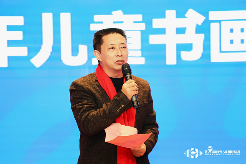 华东师范大学美术学博士、中国文化艺术发展促进会美育工作委员会副主任、希望美术教育联合创始人史金良先生上台致辞,为本次书画展拉开了序幕。