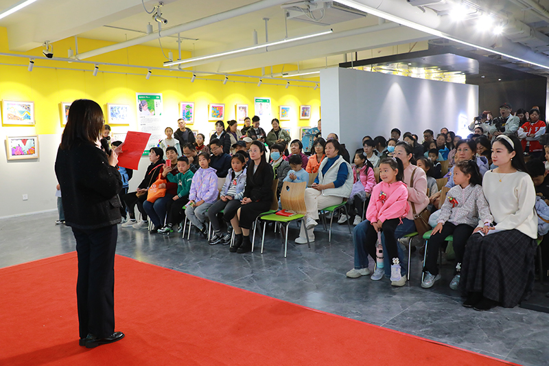 画展开幕式现场,小艺术家们济济一堂,难掩激动与兴奋之情,静候艺术之花绽放。现场嘉宾与亲友亦翘首以盼,等待帷幕轻启,共同沉浸于这场视觉与心灵的盛宴。