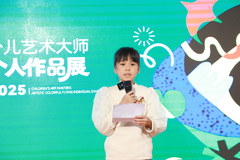 希望美术教育潍坊市区教学总监李媛媛女士致开幕辞。相信今天的个展会成为孩子们最难忘的回忆,也愿这次画展成为孩子们艺术旅程中一个闪亮的路标。愿孩子们永远珍视笔下这份独特的美好,保持探索的热情,愿艺术与希望,永远与你们同行。